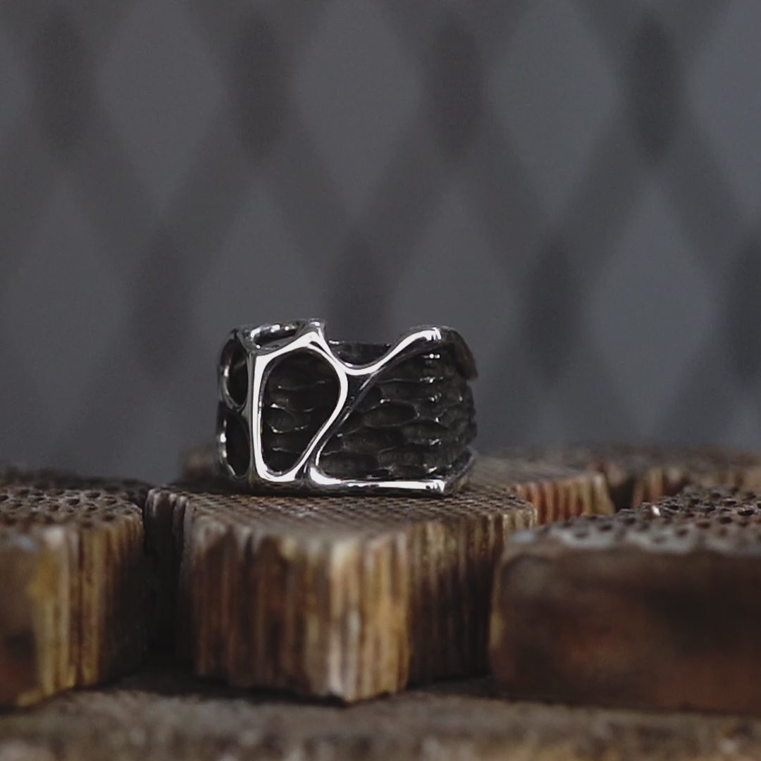R-101 fusion - Square sterling silver combination signet ring セール価格¥52,800