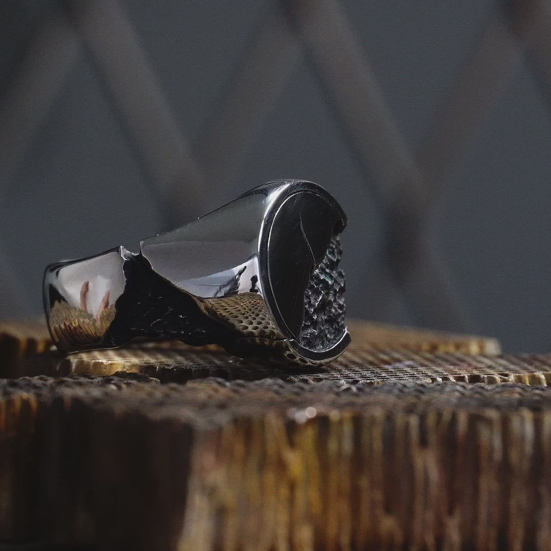 R-76 erosion - Round sterling silver signet ring